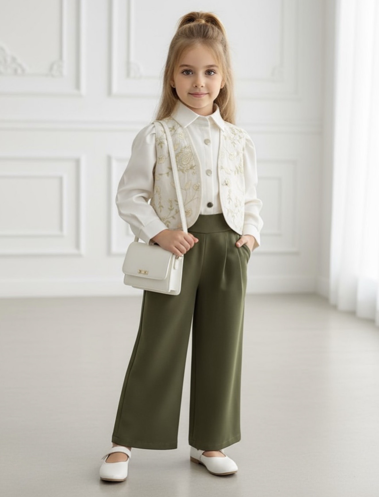 ست سه تیکه مجلسی شومیز وست و شلوار بگ دخترانه کد ۳۳۰