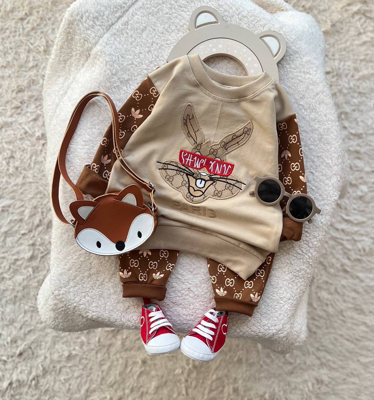 ست بلوز شلوار دخترانه دورس دو نخ راحتی و بیرونی طرح خرگوشی کد 203