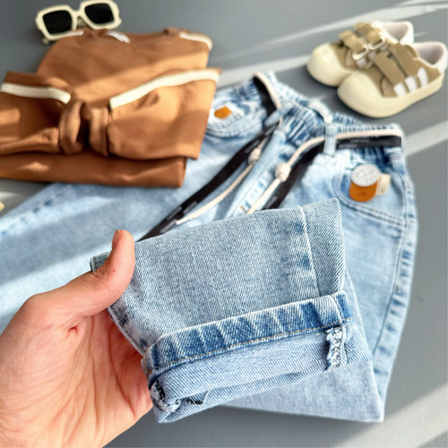 شلوارجین مام استایل اسپرت بچگانه آبی یخی