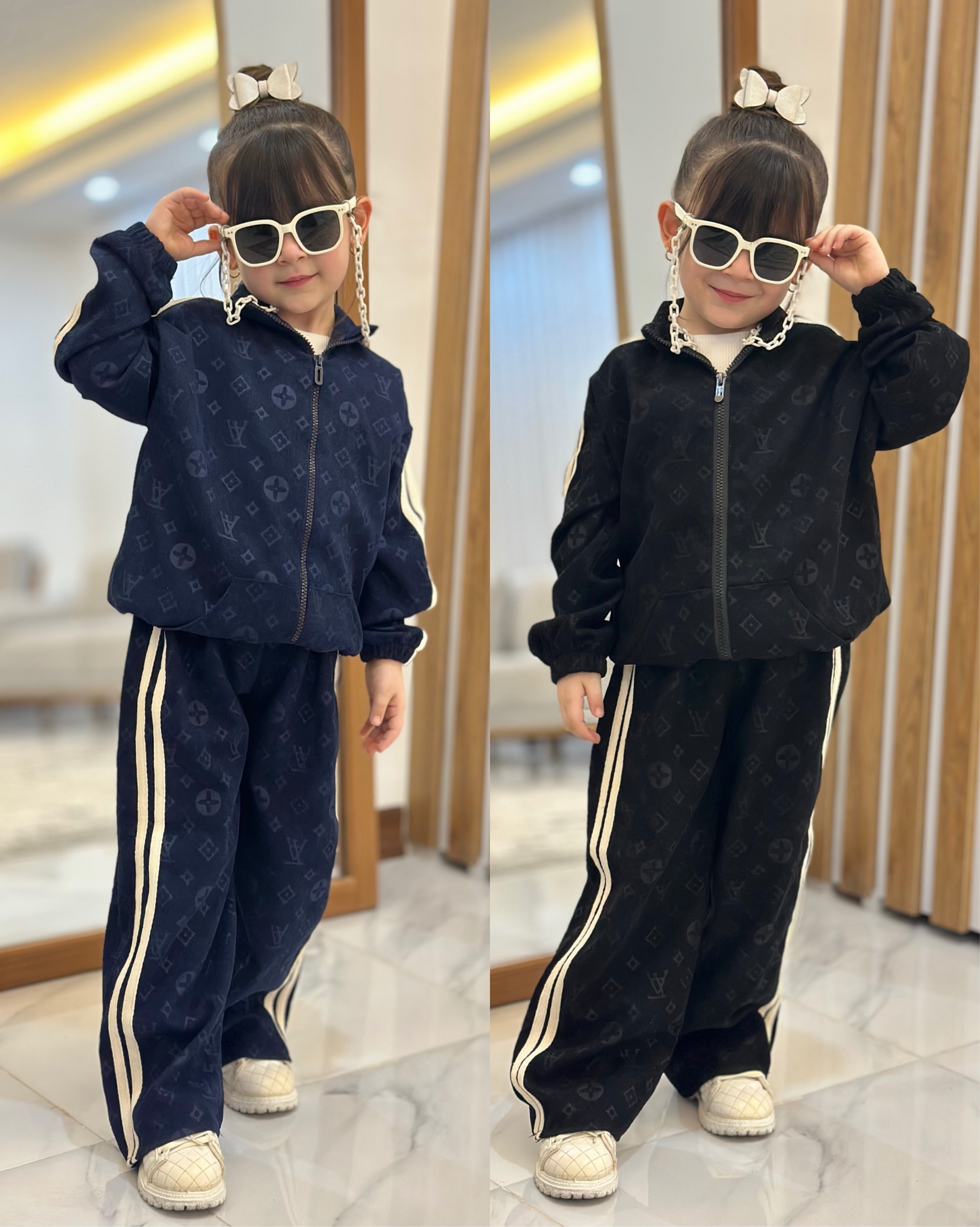 ست بلوز شلوار پلنگی دخترانه طرح ال وی کد ۳۷۶