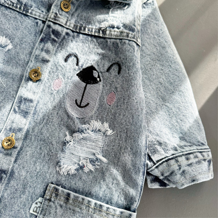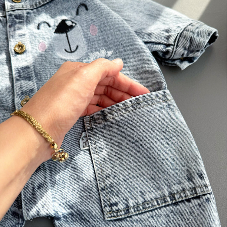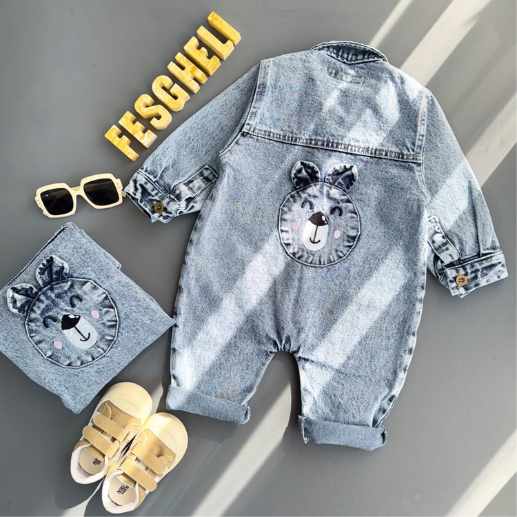 سرهمی جین بچگانه اسپرت طرح تدی 6 ماه تا 3 سال کد 263