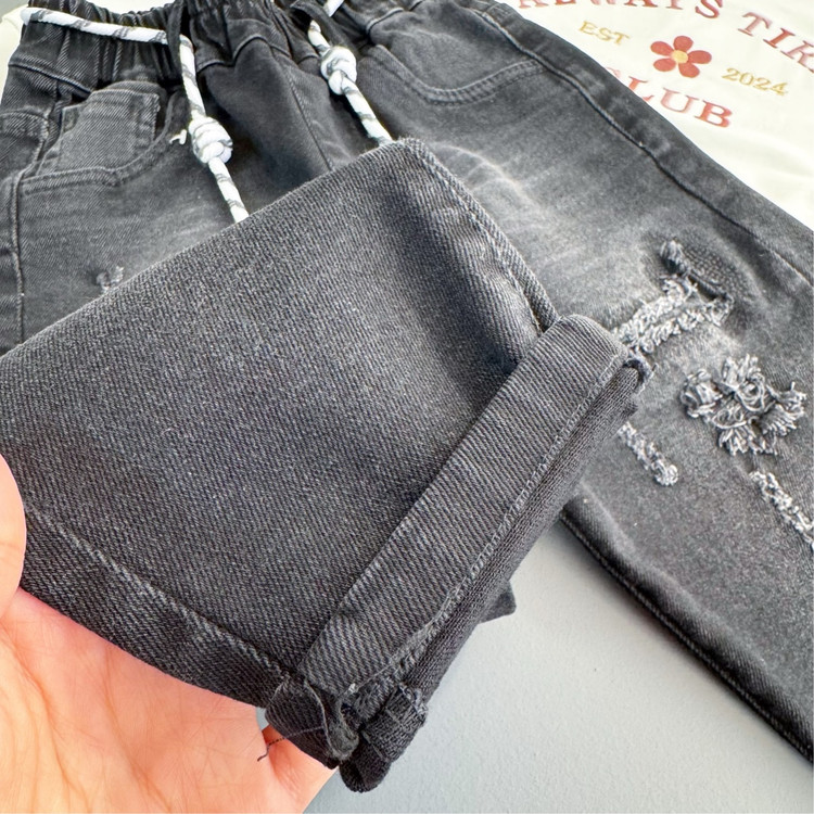 شلوار جین مام فیت زغالی بچگانه اسپرت سایز۷۰ تا ۹۵ کد ۲۷۳
