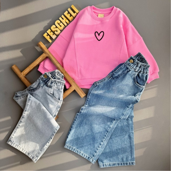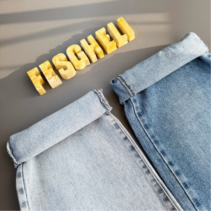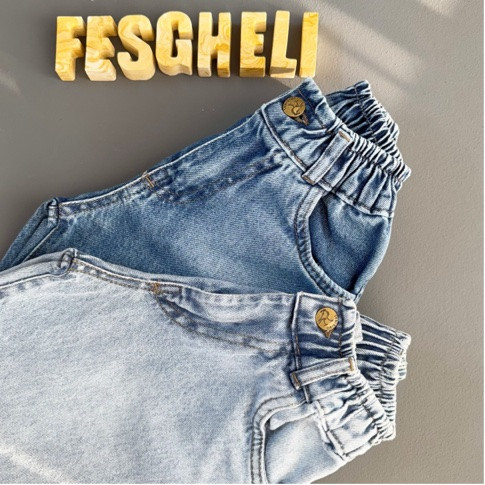 شلوار بگ جین اسپرت بچگانه رنگ آبی و یخی کد ۲۶۸