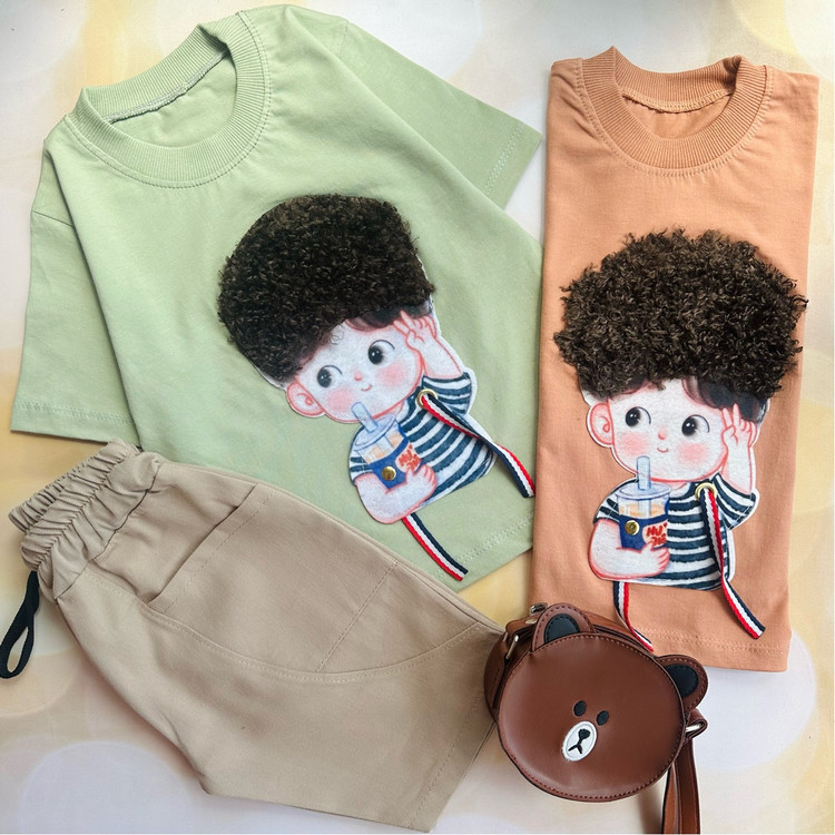 ست تیشرت شلوارک کتان بچگانه طرح موفرفری