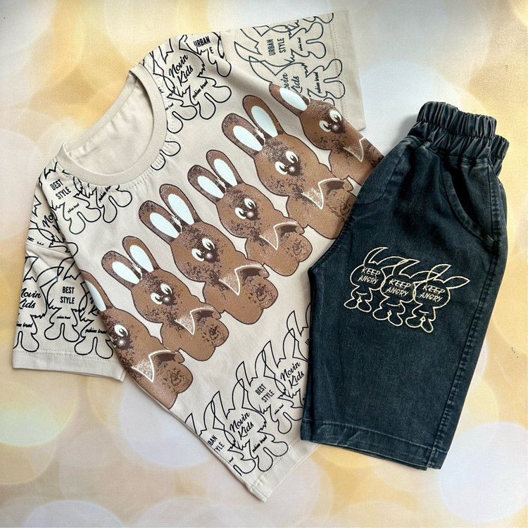 ست تیشرت و شلوارک جین اسپرت بچگانه