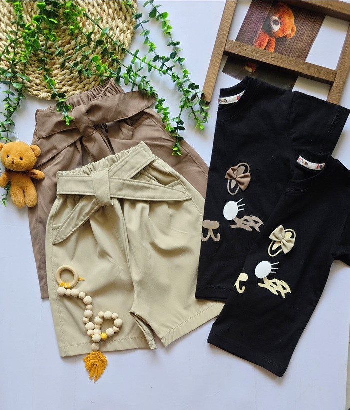 ست تیشرت وشلوارک کتان زارا دخترانه