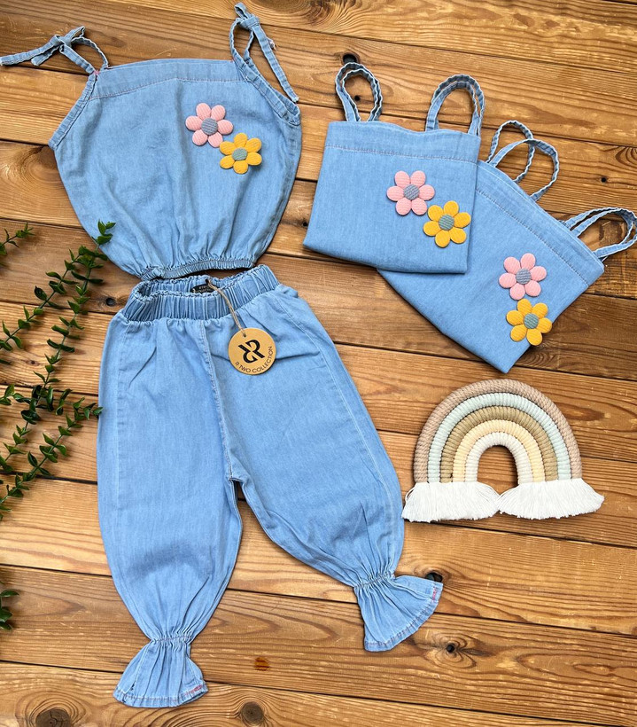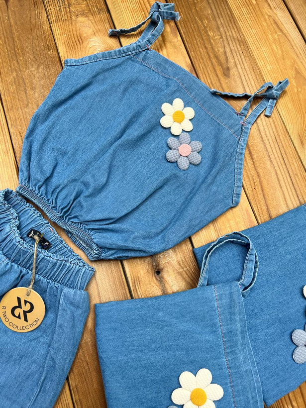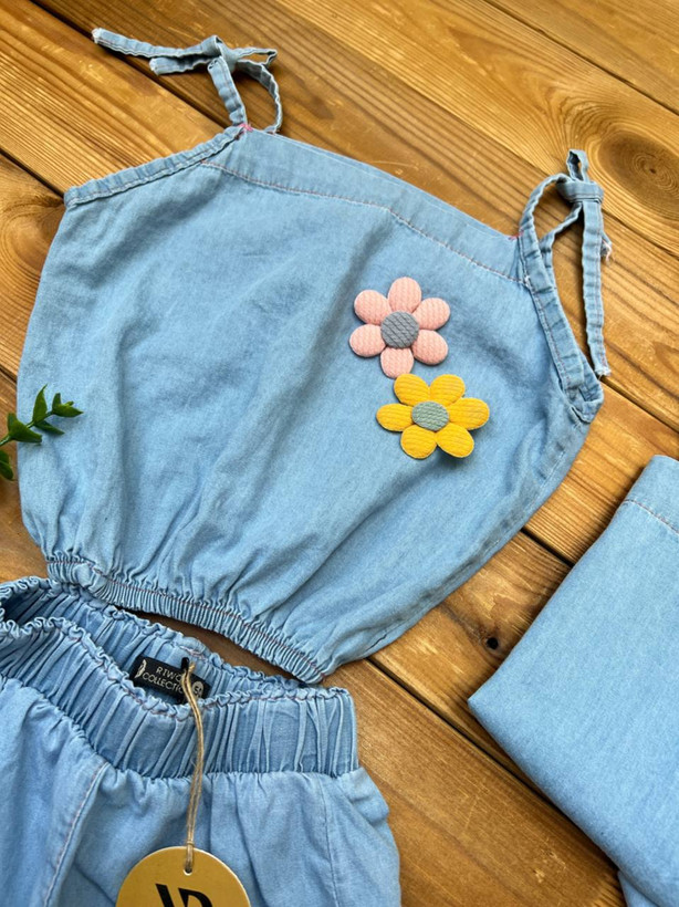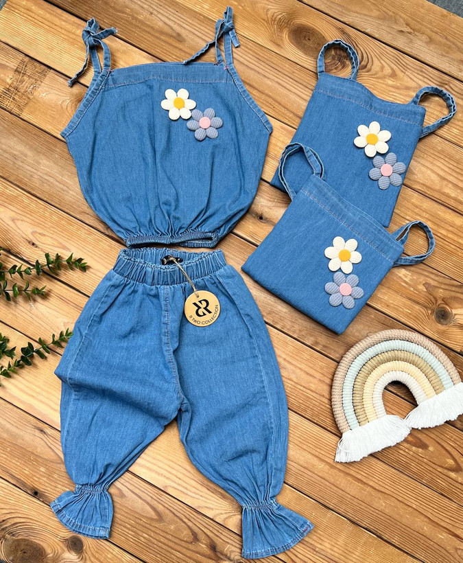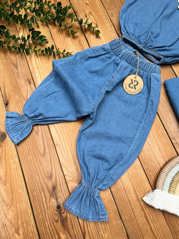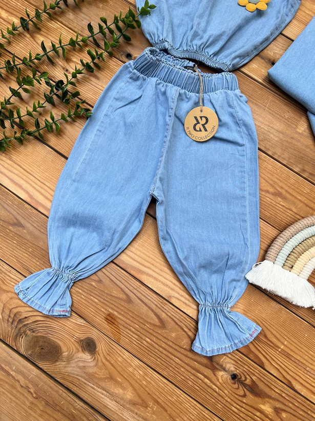 ست تاپ و شلوار جین کاغذی دخترانه کد 302