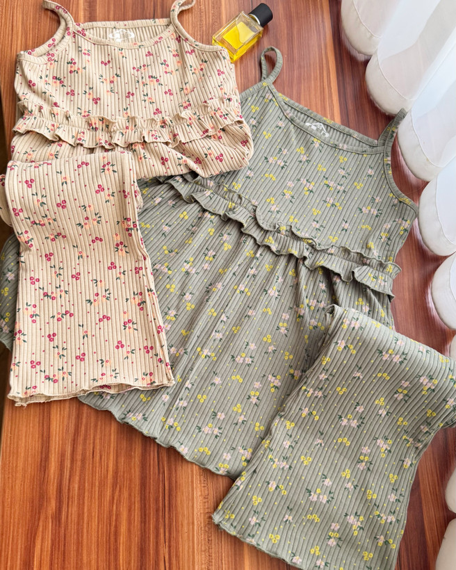 ست تاپ شلوار دمپا کبریتی گلدار دخترانه کد ۳۲۰