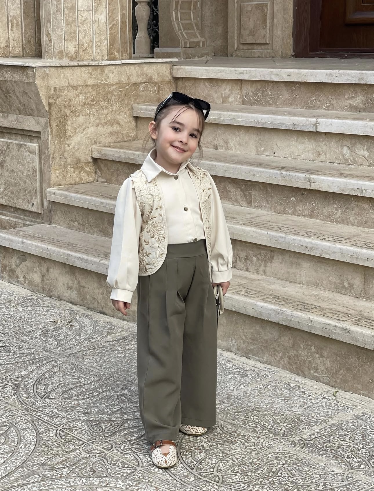 ست سه تیکه مجلسی شومیز وست و شلوار بگ دخترانه کد ۳۳۰