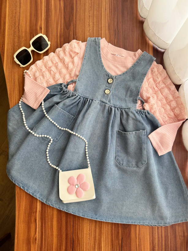 پیراهن سه تیکه وارداتی جین دخترانه کد ۳۳۱
