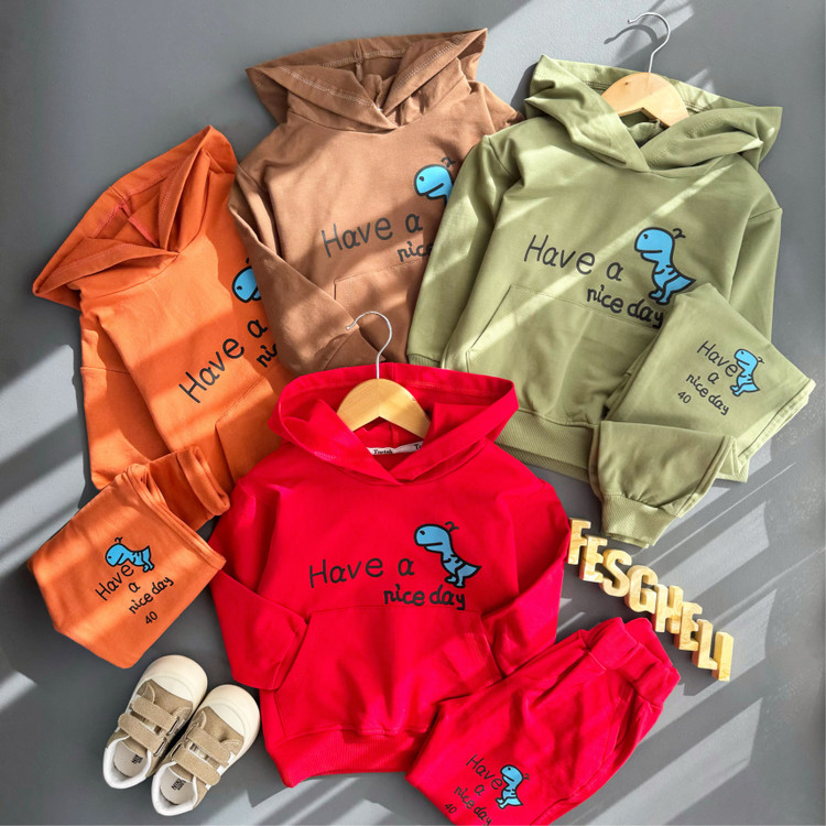 هودی شلوار بچگانه اسپرت دورس دو نخ لاکرا دار طرح دایناسور کد 206