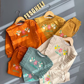 ست بلوز شلوار دخترانه دورس دو نخ راحتی و بیرونی طرح چین دار کد 207