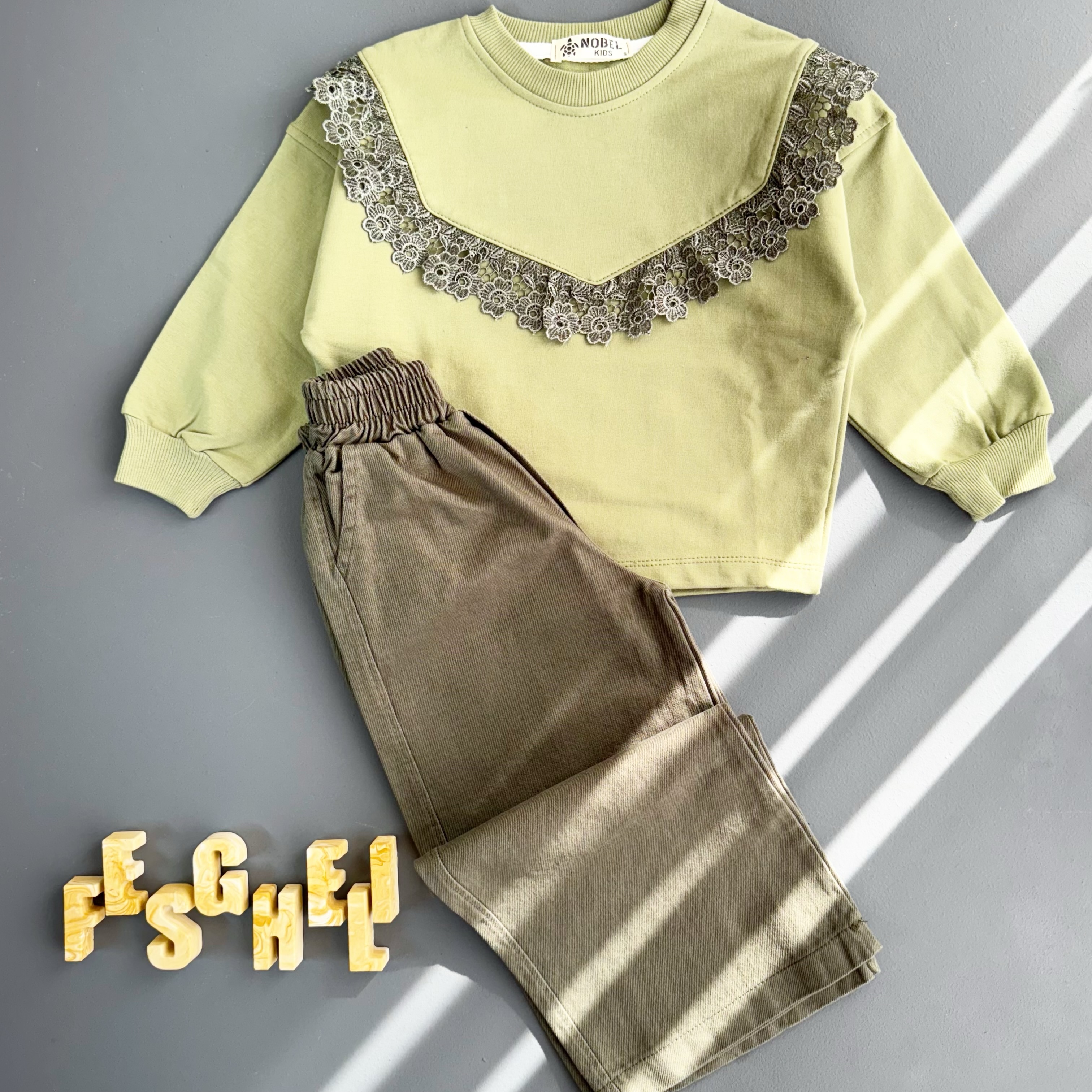 ست بلوز دورس و شلوار کتان دخترانه کد ۳۴۳