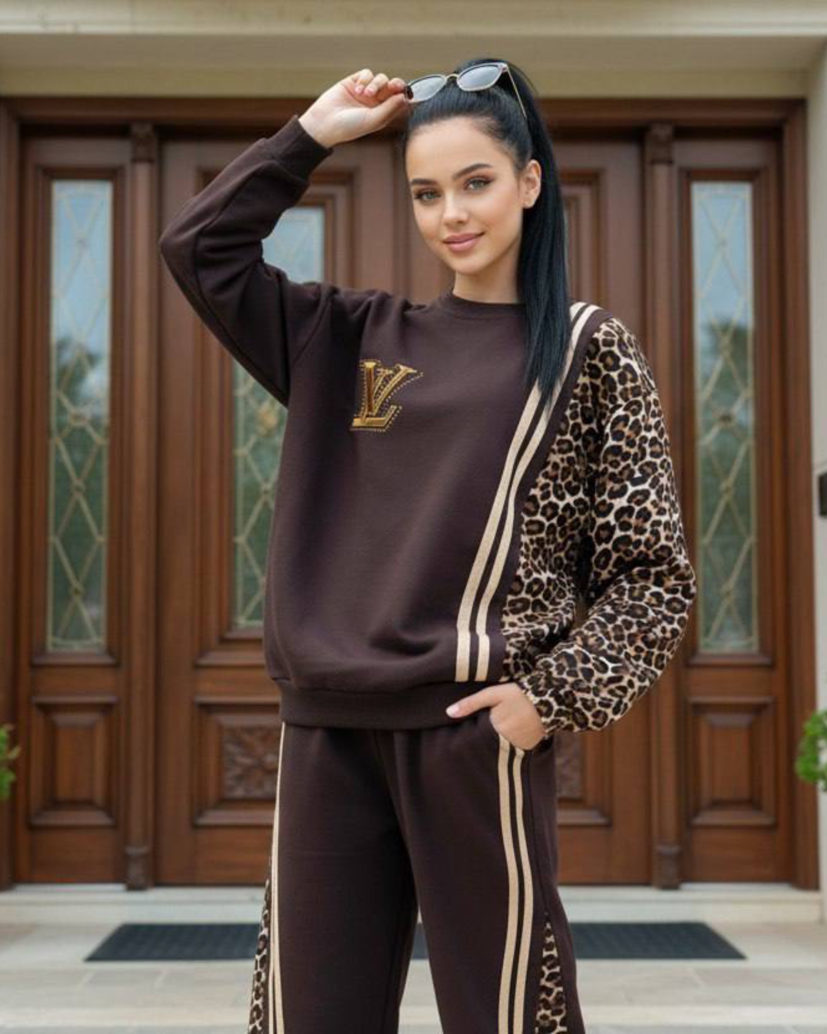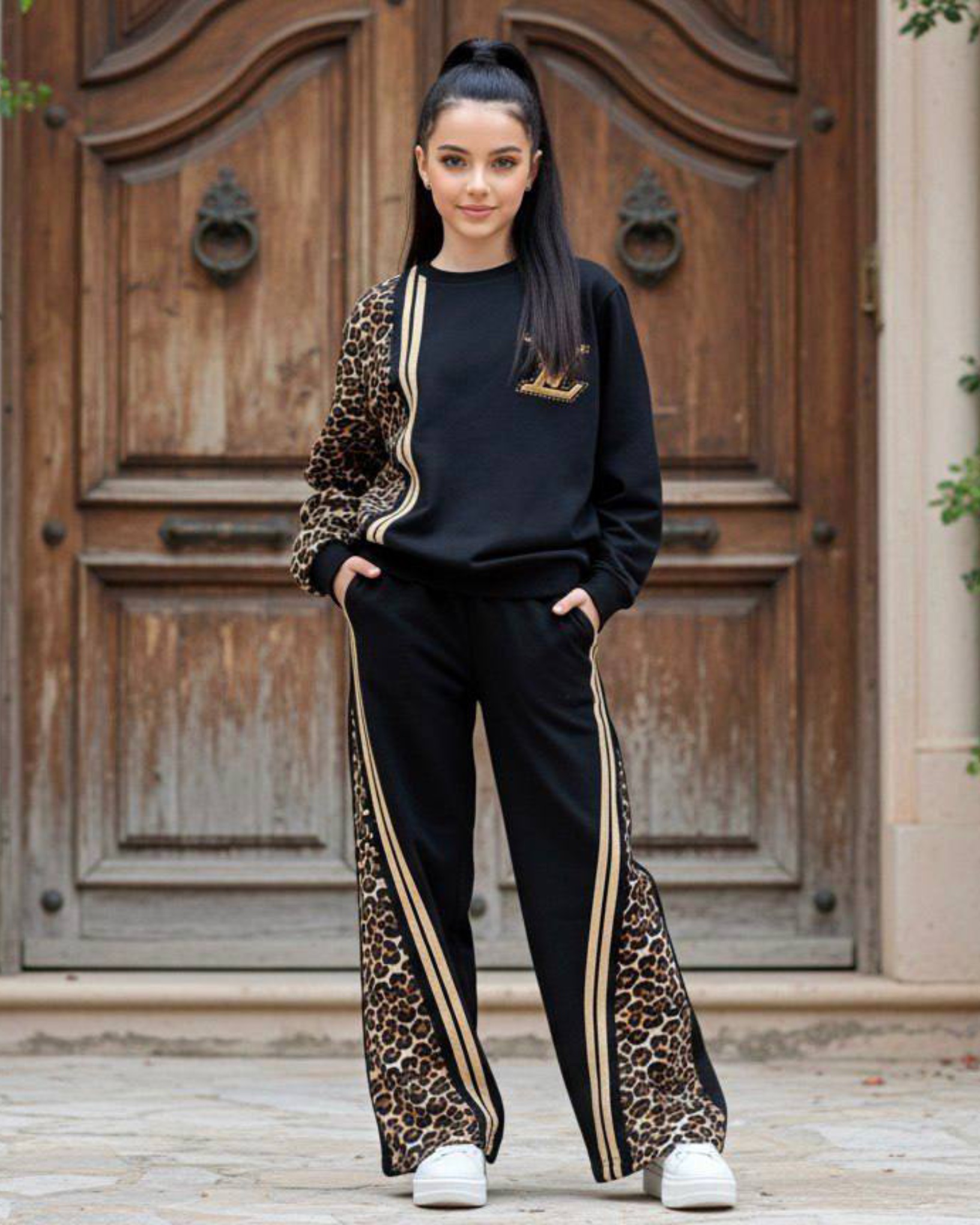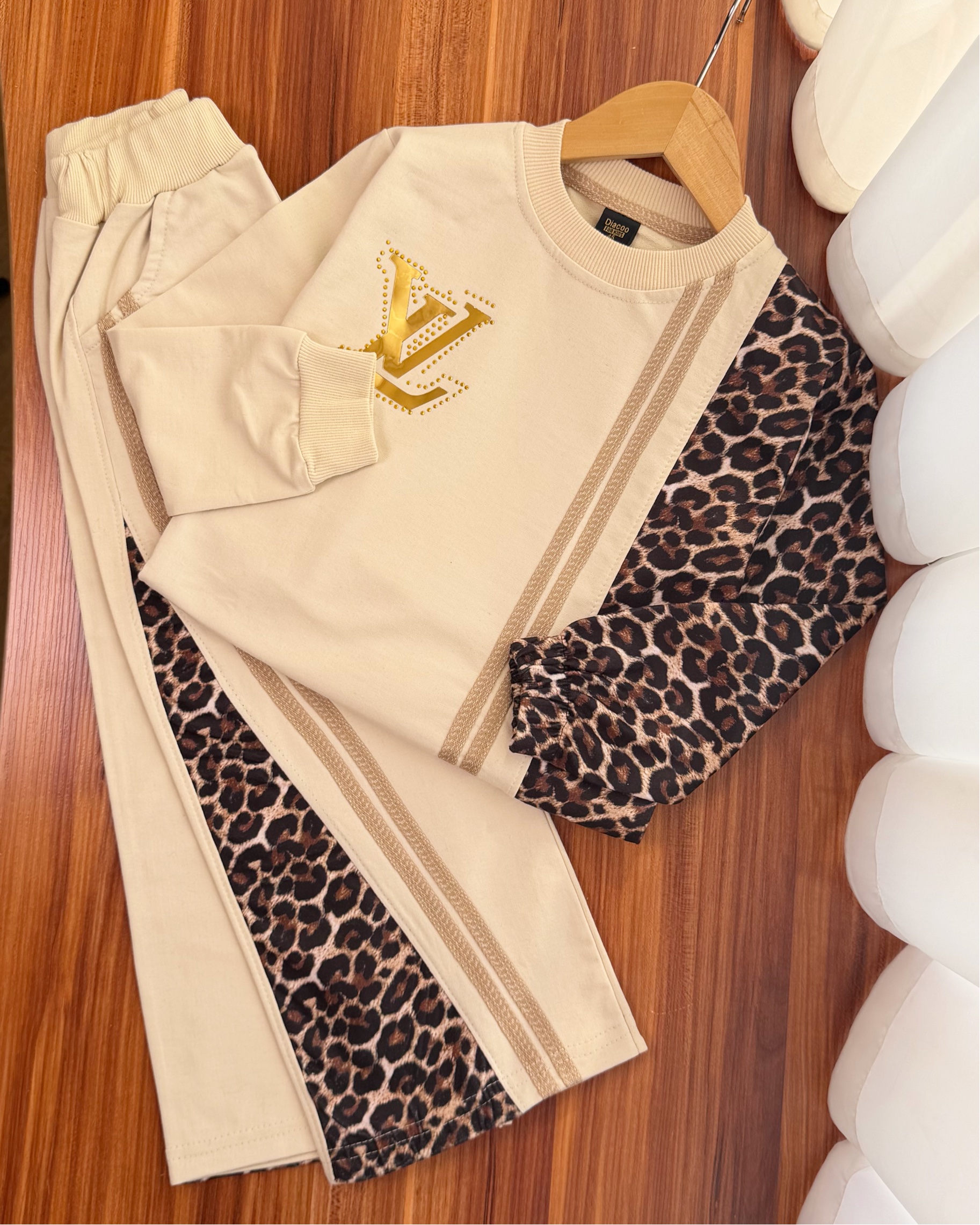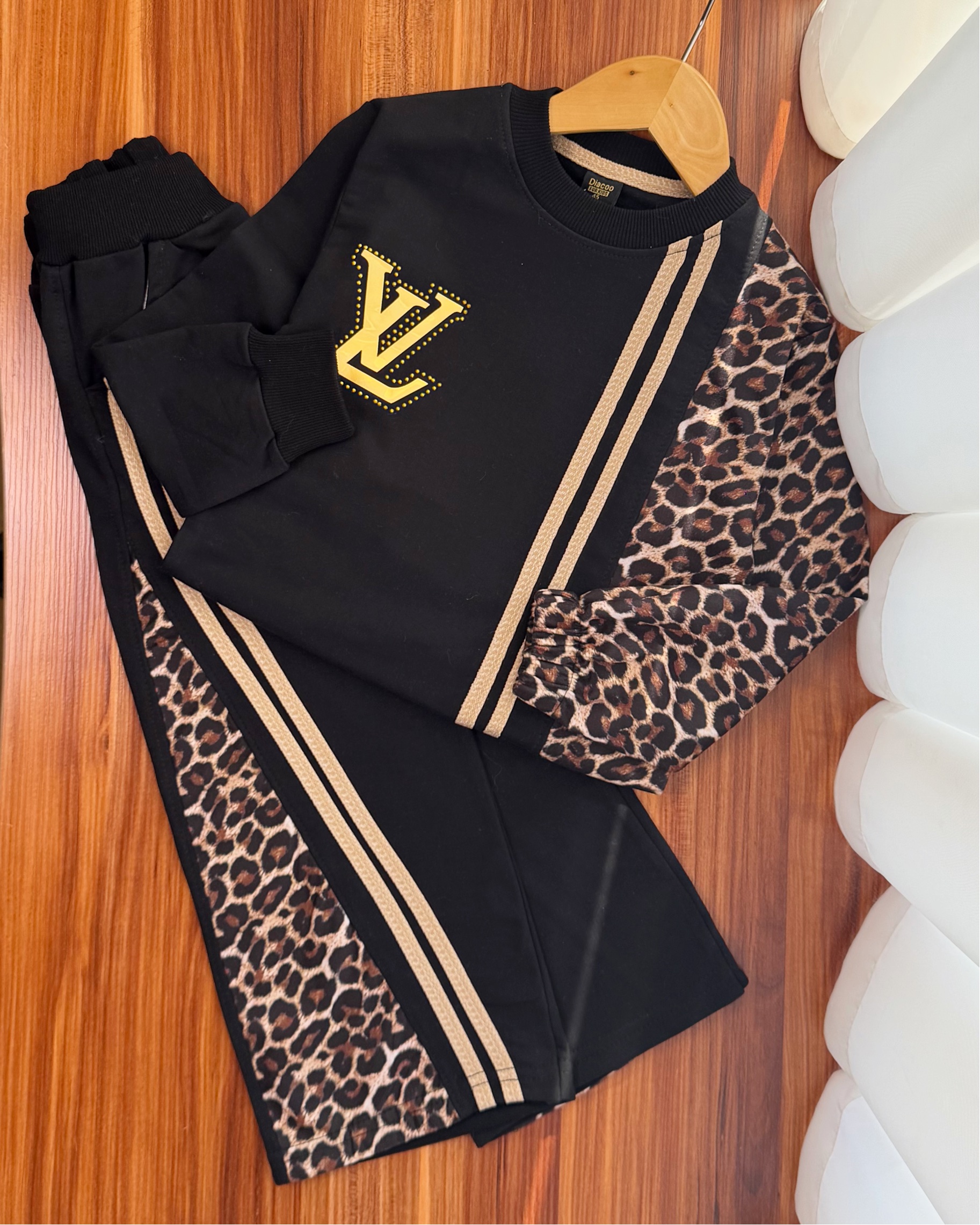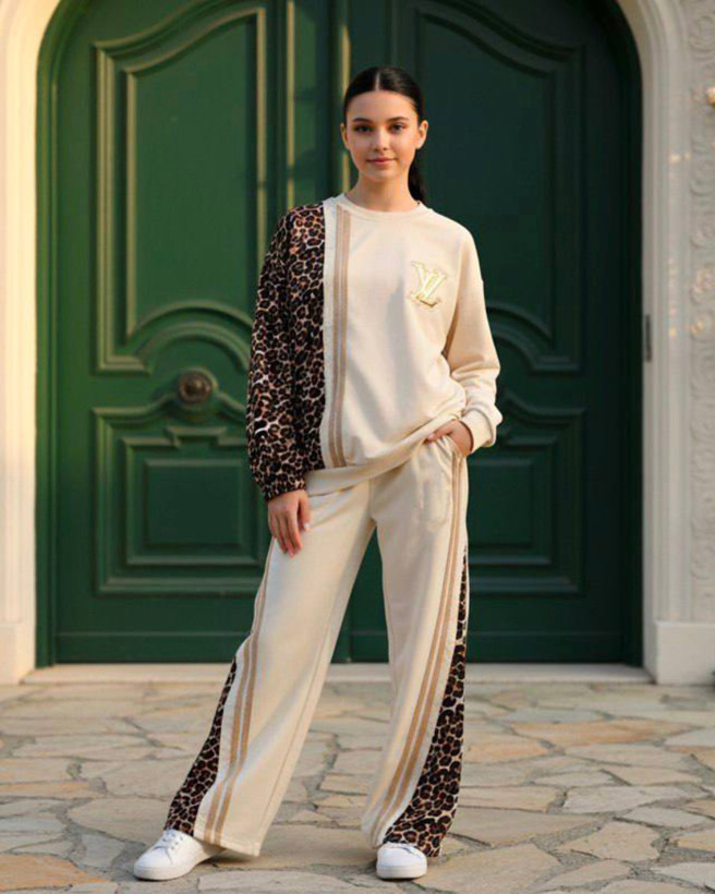ست بلوز شلوار پلنگی دخترانه طرح ال وی کد ۳۷۶