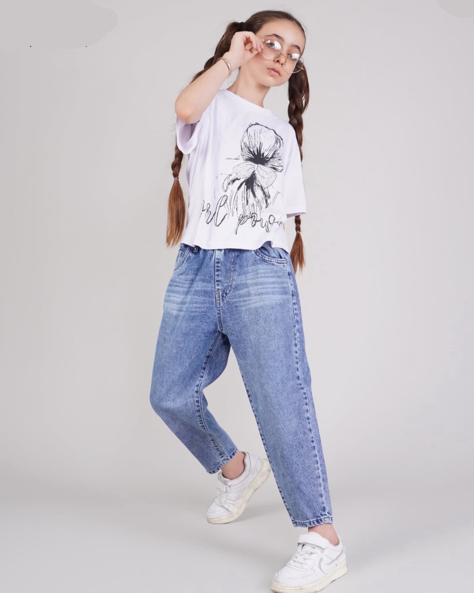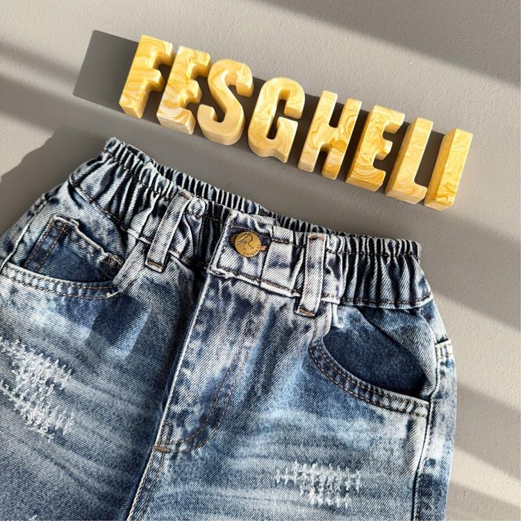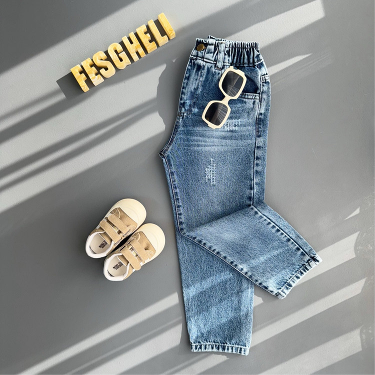 شلوارجین بچگانه اسپرت مناسب برای ۶ سال تا ۱۷ سال پارچه وارداتی کپ مام استایل آبی کد 211