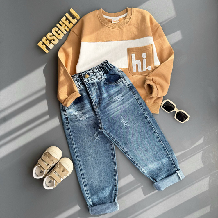 شلوارجین بچگانه اسپرت مناسب برای ۶ سال تا ۱۷ سال پارچه وارداتی کپ مام استایل آبی کد 211