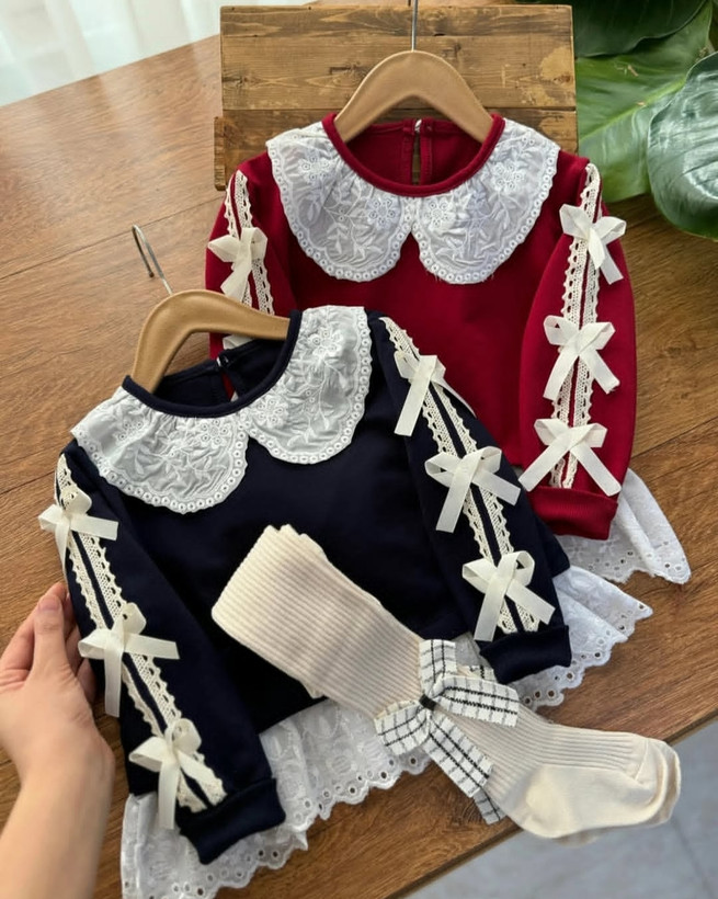 🎀پاپیون روی استین دوخت شده و قابل جدا شدن نیس