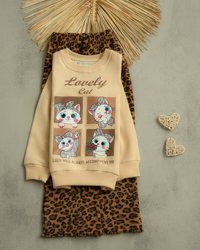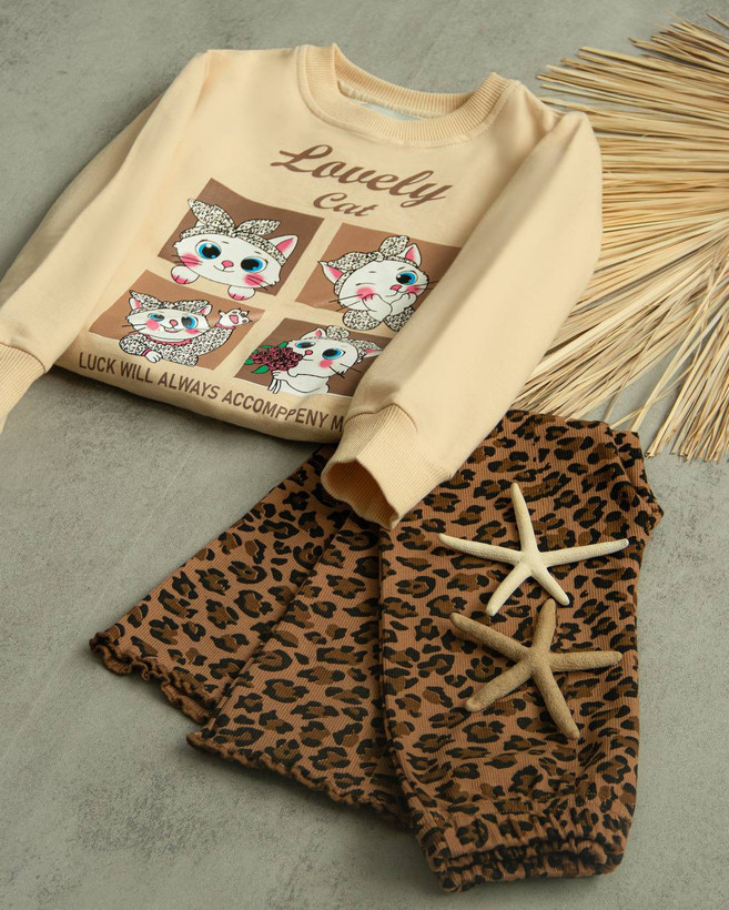 ست بلوز شلوار دخترانه کیتی و شلوار پلنگی کد ۳۸۲