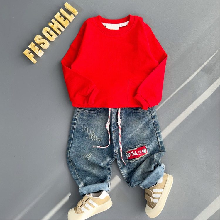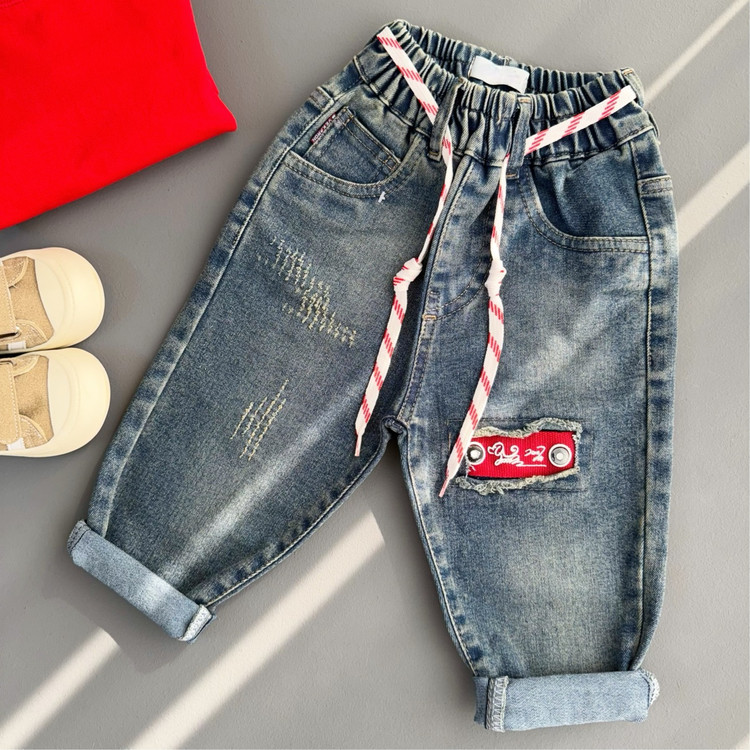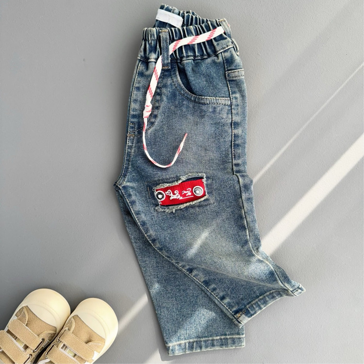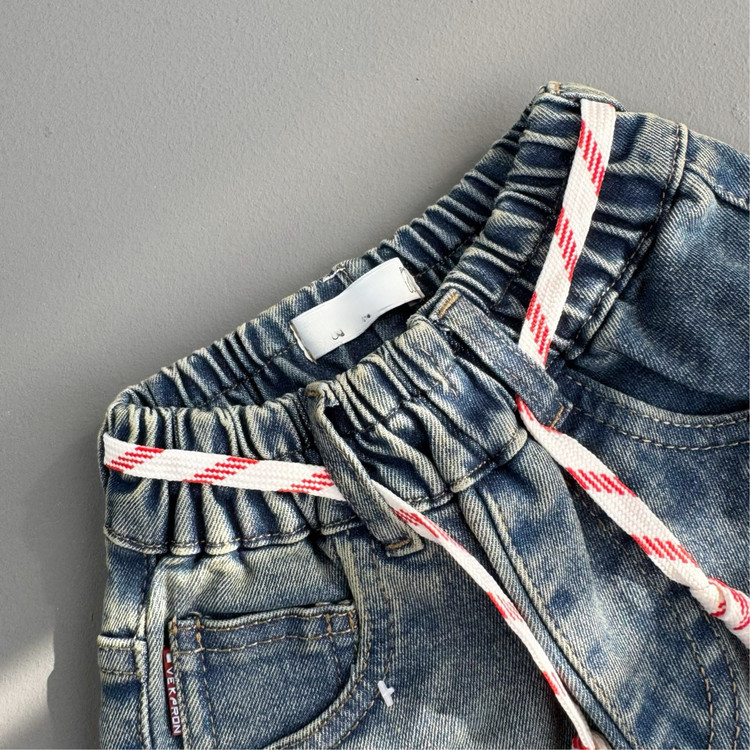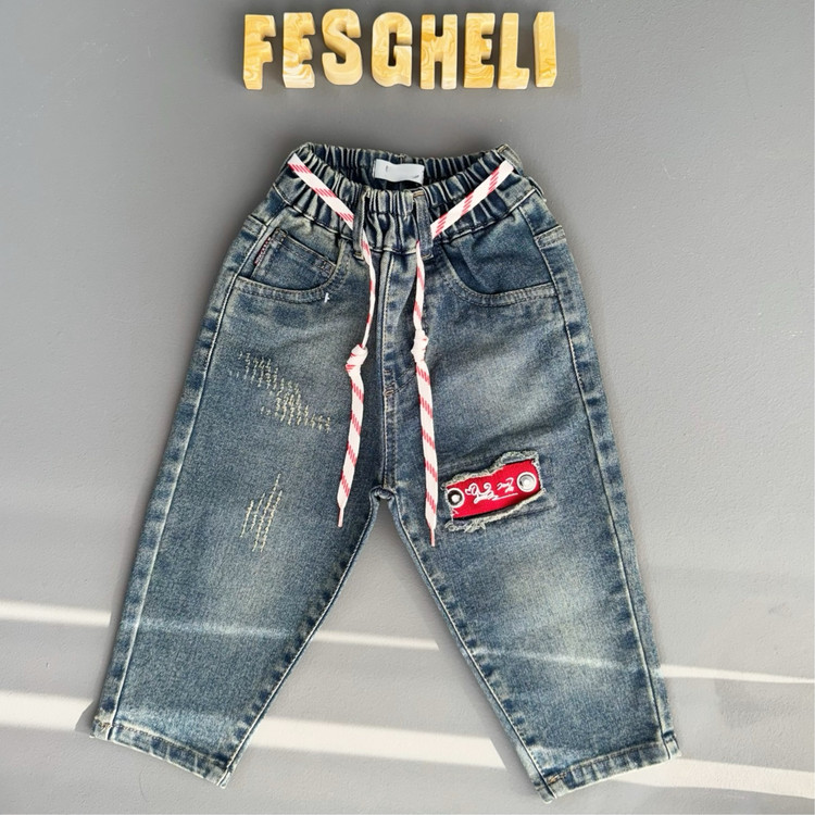شلوارجین بچگانه مام استایل پارچه خارجی نقلی رنگ آبی چرک کد 212