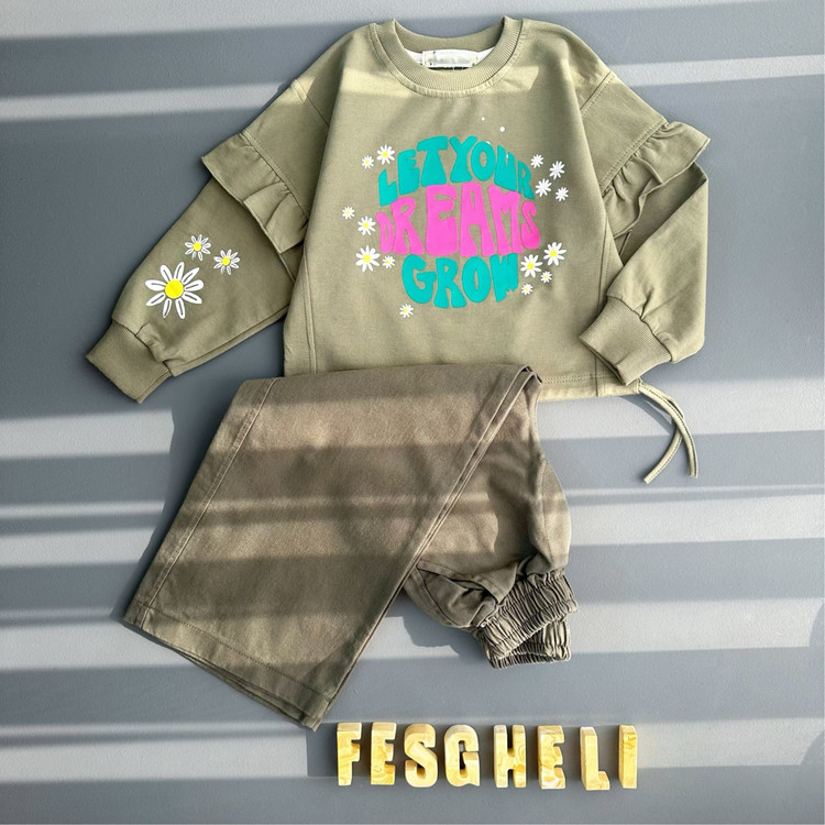 ست بلوز و شلوار بگ کتان دخترانه ماهگل کد ۲۲۸