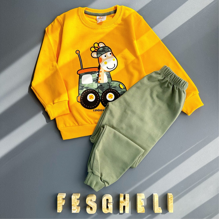 ست بلوز شلوار بچگانه طرح زرافه ماشینی کد ۲۳۳