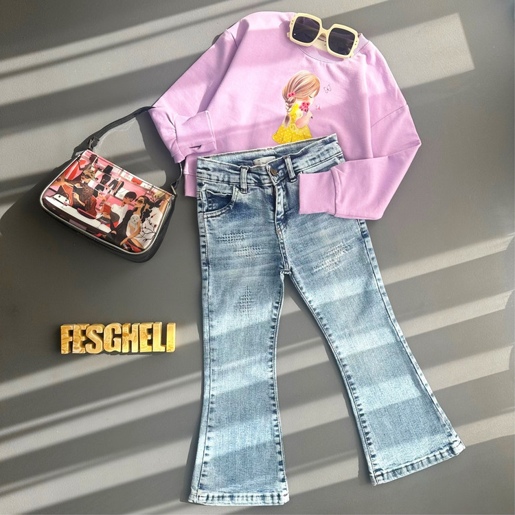 شلوار جین بوتکات دخترانه دمپا کمر کش تنظیم دار کد ۲۴۰
