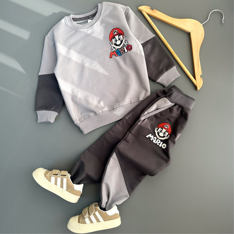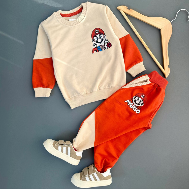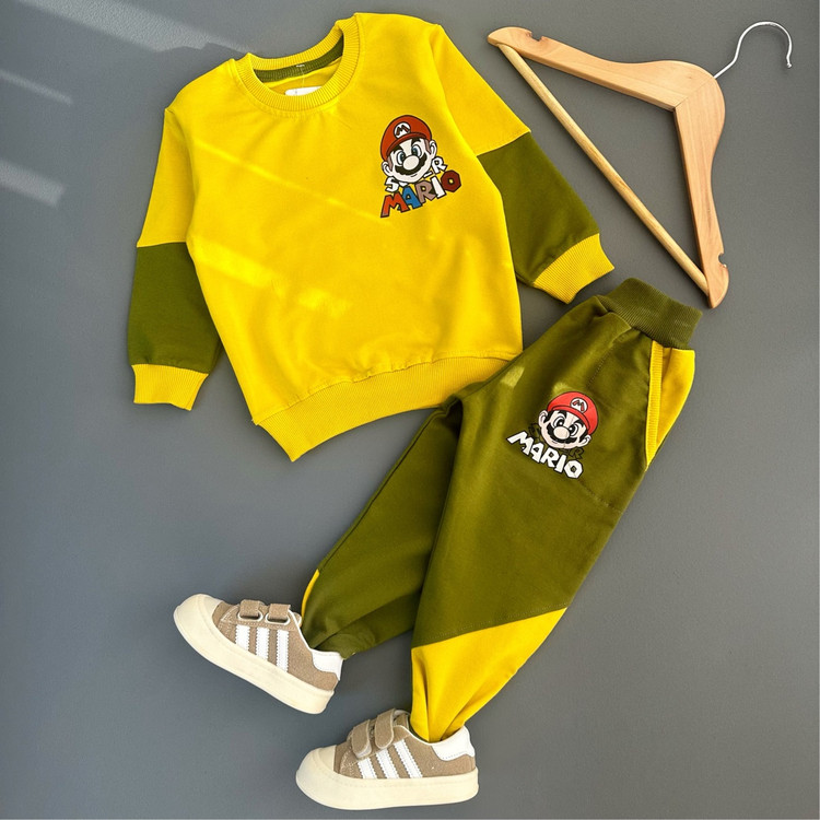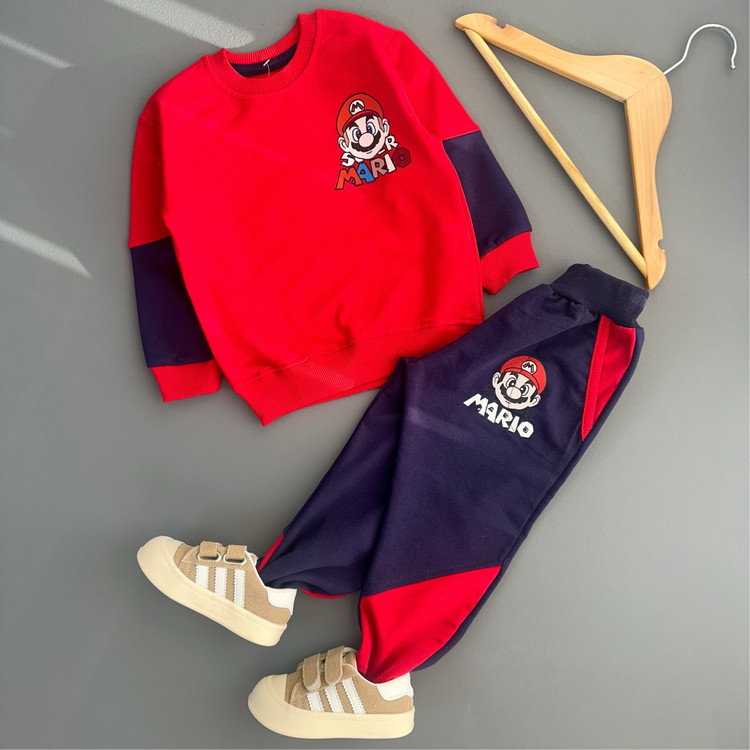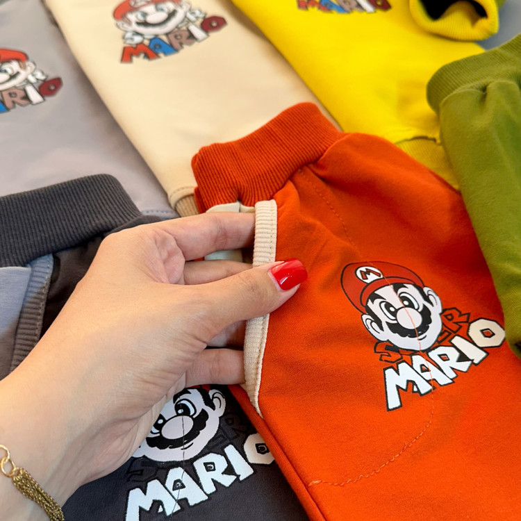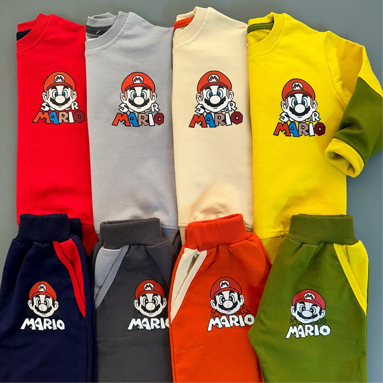 ست بلوز شلوار بچگانه جنس دورس دو نخ سایز 30 تا 55 طرح ماریو کد 257